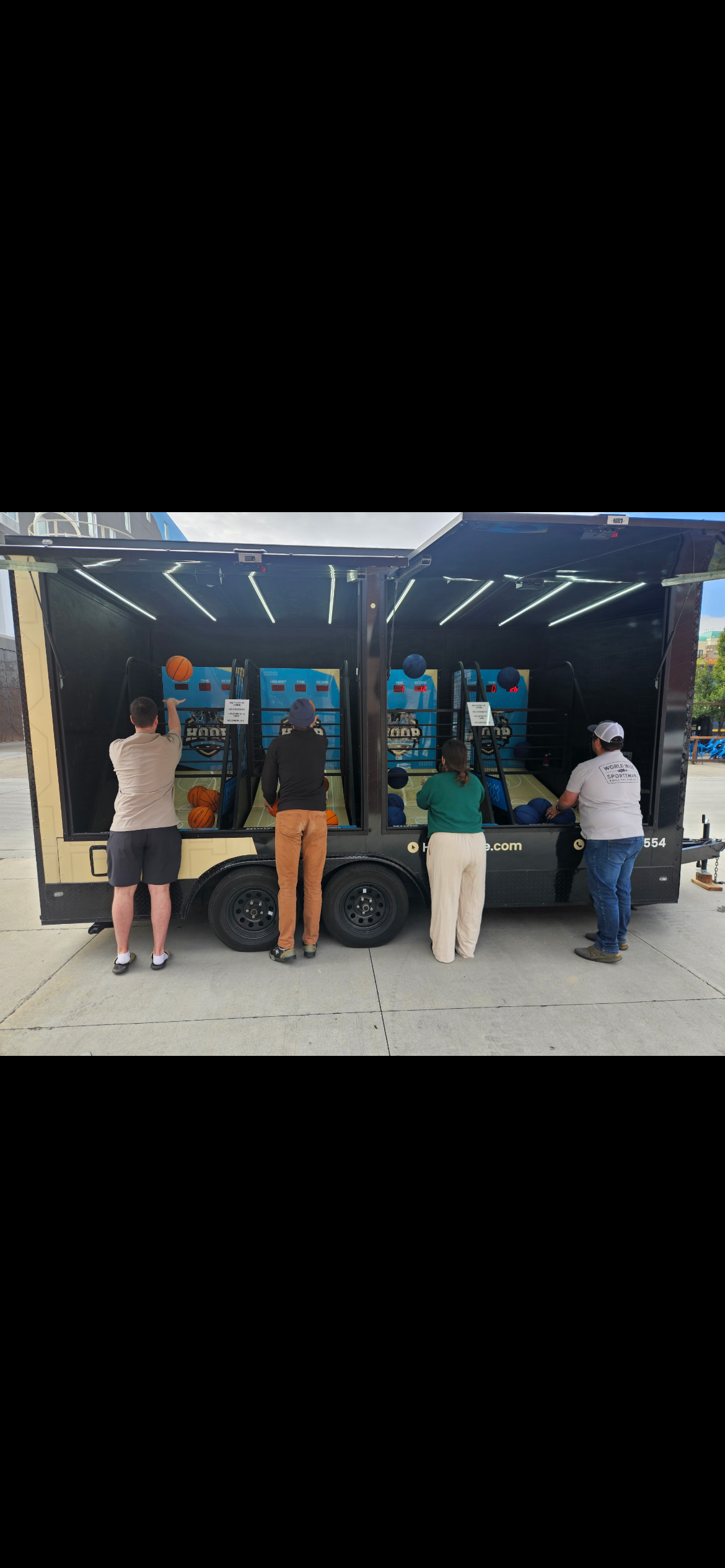 We put 4 arcade basketball machines in a trailer.